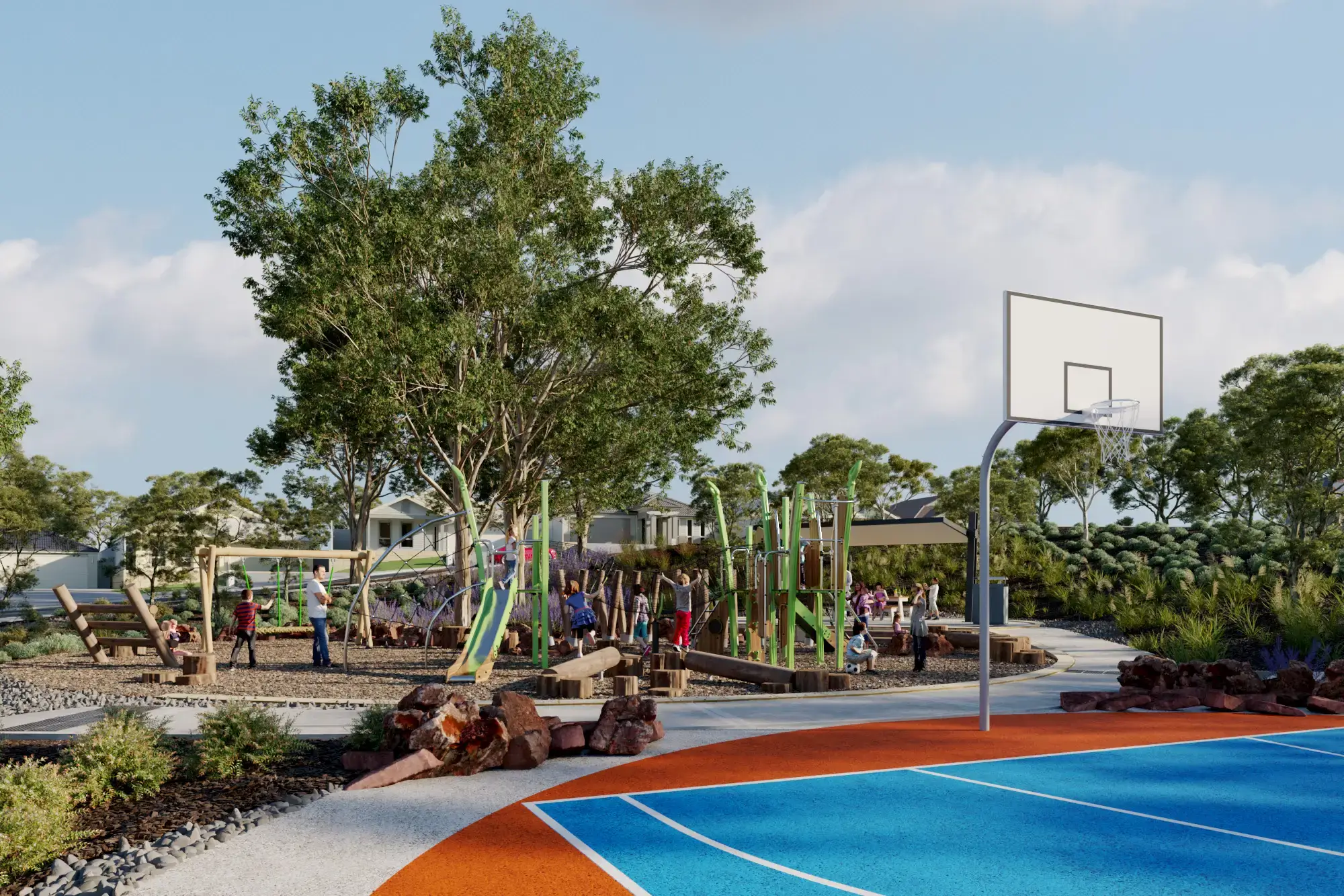 Highland Range is well positioned with the established Wiltshire and Augustus Parks close by. Wiltshire Park seamlessly connects to the estate and includes walkways, public art, viewing platforms and a giant sun dial. Augustus Park offers an activated lake along with the babbling Jane Brook, just a short walk down the hill.